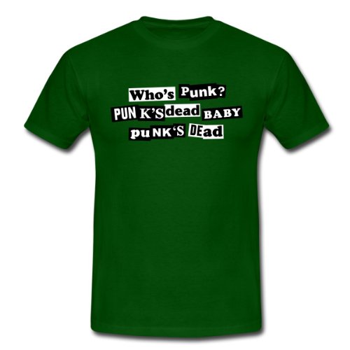 Spreadshirt, Tee shirt classique Homme, vert bouteille, M?Brown Punk's dead T-Shirt. Le classique: ce tee shirt pour hommes à coupe droite est composé de coton filé pré-rétréci. La double couture en bas des manches, à la base et au col, garantit sa qualité et sa bonne finition. Confort garanti. Grammage: 190g/m². Composition 100% coton. Après confirmation de commande nous imprimons le produit individuellement pour toi. Ainsi, nous fabriquons des pièces uniques qui font vraiment plaisir à nos clients et soit dit en passant, nous préservons l''environnement.
