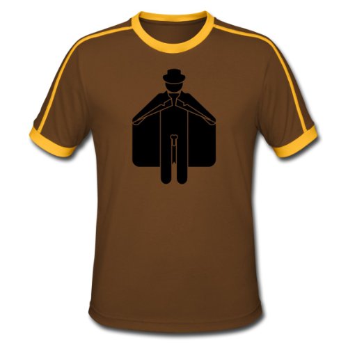 Spreadshirt, potloodventer, Tee shirt Retro Homme, chocolat/soleil, M?exhibitionniste. Ce tee shirt style retro a deux bandes de couleurs contrastées sur les épaules, au col et aux ourlets de manches. Il est 100% coton et d'une très grande qualité, grâce à ses coutures doubles aux manches et à l'encolure. L'épaisseur du tissu le rend résistant à l'épreuve du temps: 180g/m². 100% coton. Après confirmation de commande nous imprimons le produit individuellement pour toi. Ainsi, nous fabriquons des pièces uniques qui font vraiment plaisir à nos clients et soit dit en passant, nous préservons l''environnement.