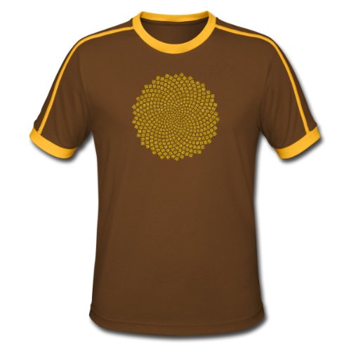Spreadshirt, Sunflower Seed, digital gold, Fibonacci-Spirale, Goldener Schnitt, Goldener Winkel, Tee shirt Retro Homme, chocolat/soleil, M