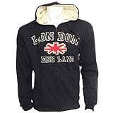 Sweatshirt à capuche et fermeture Eclair imprimé 'London Union Jack' pour homme (M - 97/102cm) (Bleu marine)