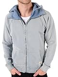 | ✚✚✚ Rockamora Veste sweat William (L, bleu clair) Aspect usé, Bandes rapportées extra-larges , Fermeture-éclair tout du long, poche kangourou, Patch logo sur les poches