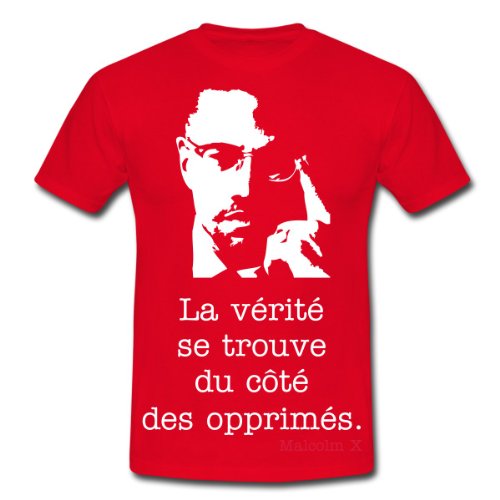 #La vérité se trouve du côté des opprimés. Malcolm X. Le classique: ce tee shirt pour hommes à coupe droite est composé de coton filé pré-rétréci. La double couture en bas des manches, à la base et au col, garantit sa qualité et sa bonne finition. Confort garanti. Grammage: 190g/m². Composition 100% coton. Après confirmation de commande nous imprimons le produit individuellement pour toi. Ainsi, nous fabriquons des pièces uniques qui font vraiment plaisir à nos clients et soit dit en passant, nous préservons l''environnement.