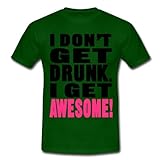 Spreadshirt, I Don't Get Drunk, Tee shirt classique Homme, vert bouteille, MI don't get drunk. I get Awesome! Tee shirts. Le classique: ce tee shirt pour hommes à coupe droite est composé de coton filé pré-rétréci. La double couture en bas des manches, à la base et au col, garantit sa qualité et sa bonne finition. Confort garanti. Grammage: 190g/m². Composition 100% coton. Après confirmation de commande nous imprimons le produit individuellement pour toi. Ainsi, nous fabriquons des pièces uniques qui font vraiment plaisir à nos clients et soit dit en passant, nous préservons l''environnement.