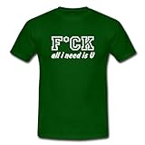 Spreadshirt, FCK | F*CK | FUCK | all i need is u, Tee shirt classique Homme, vert bouteille, M