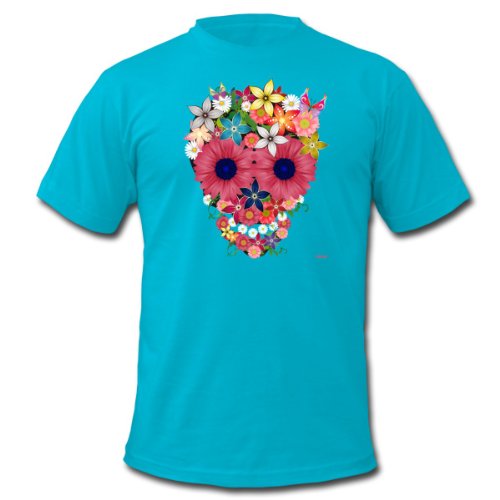 Spreadshirt, skull flowers by WAM, Tee shirt American Apparel Homme, bleu aqua, S